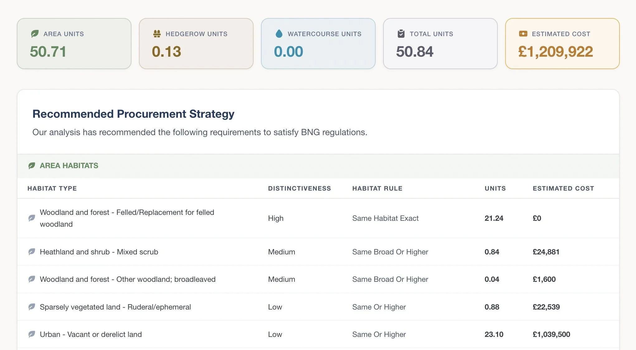 Instantly understand your off-site BNG unit costs