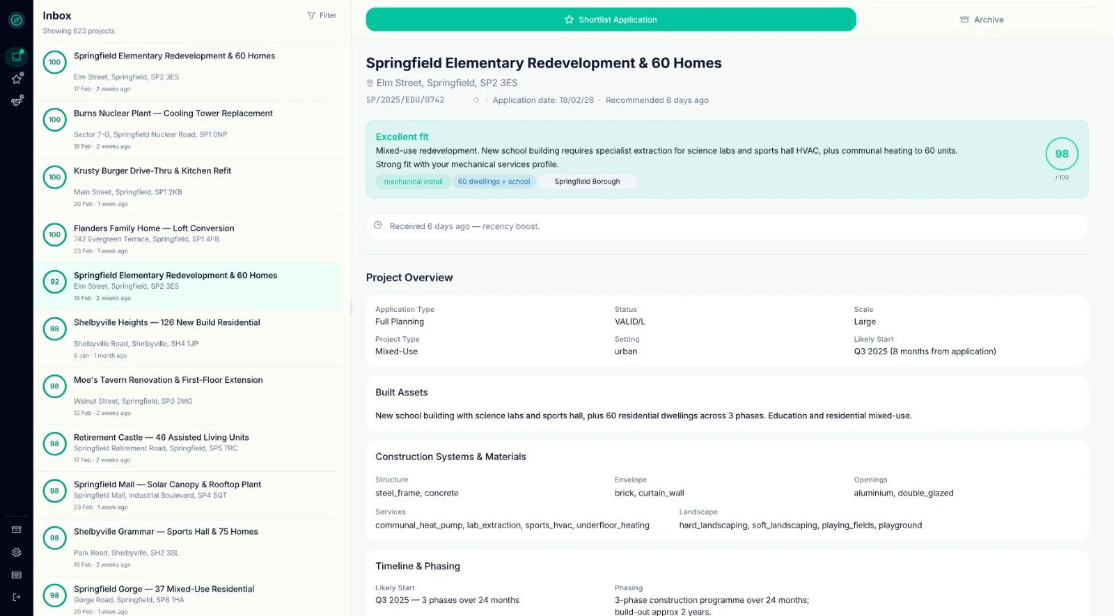 LeadScout reads every UK planning application and pulls out the individual opportunities relevant to your business — project scope, specs, contacts, and estimated value. All in one feed, updated daily.
